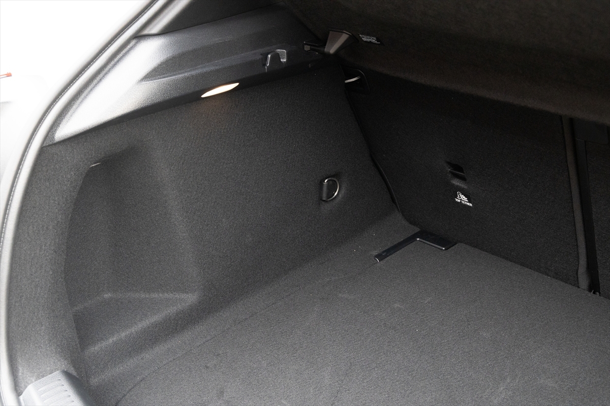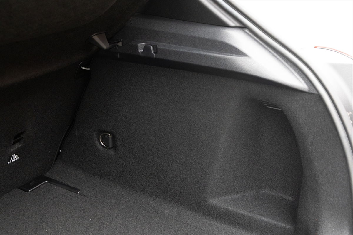 後席を立てた状態での容積は345Lと、国産コンパクトSUVと同等といったところ。12Vアクセサリーソケットなどはないので、運転しながらポータブル電源を充電するという使い方を望む場合は、運転席側からケーブルを引き回す必要があるのは残念なところです。