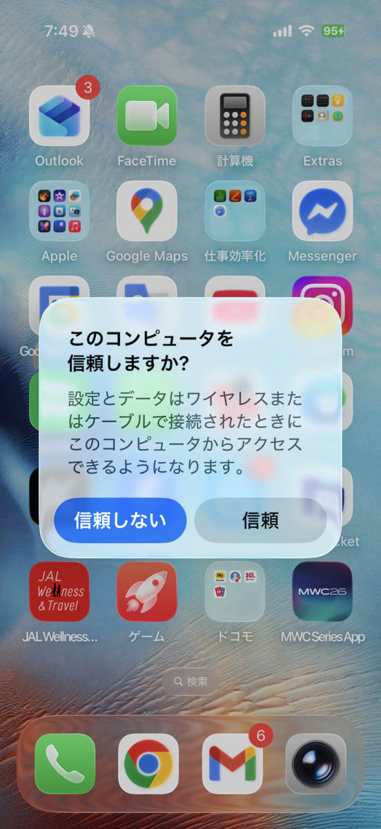 「公共のUSB充電ポートはデータの漏洩が心配」という声も聞きますが、最近のスマートフォンは設定を切り替えないとデータは流れないようにはなっているので、個人的にはあまり気にしていません。ですが気になる場合は、充電線用でデータ通信不可のUSBケーブルを用意しておけば安心です。