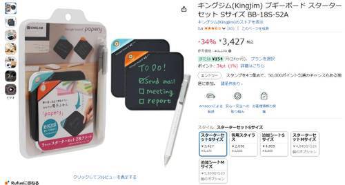 キングジムの「ブギーボード ペーパリー スターターセット Sサイズ BB-18S-S2A」が、Amazonで割引対象。参考価格5,170円のところ、34%オフの3,427円で販売中。