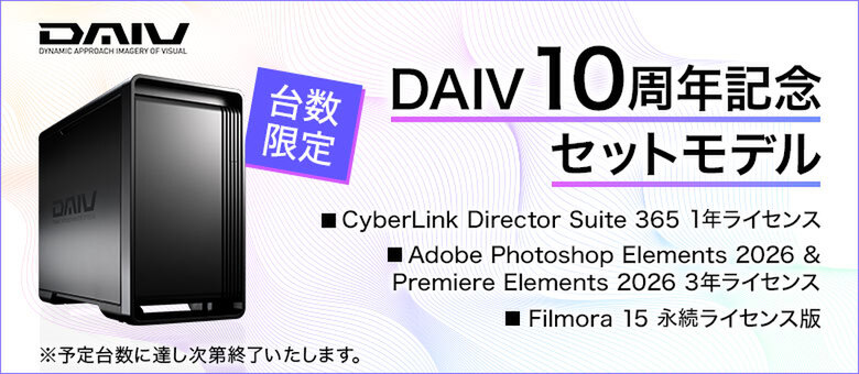 DAIVブランドは、映像制作や設計、研究開発分野での実績を誇り、マルチコアCPUと高性能GPU、大容量メモリを搭載することで、クリエイティブな業務の生産性を高める製品を提供してきた。2026年に迎えた10周年を記念し、特別セットモデルやクーポンキャンペーンが発表された。限定販売されるセットモデルには、クリエイティブソフトも付属しており、発売開始は2月24日からとなる。