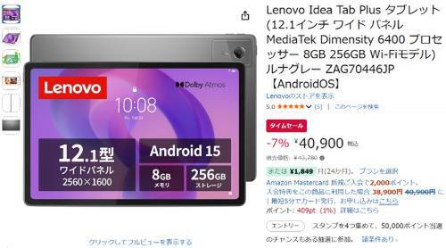 12.1型(2560×1600)×10200mAh。ペン付属のLenovo Idea Tab Plusが7%オフ