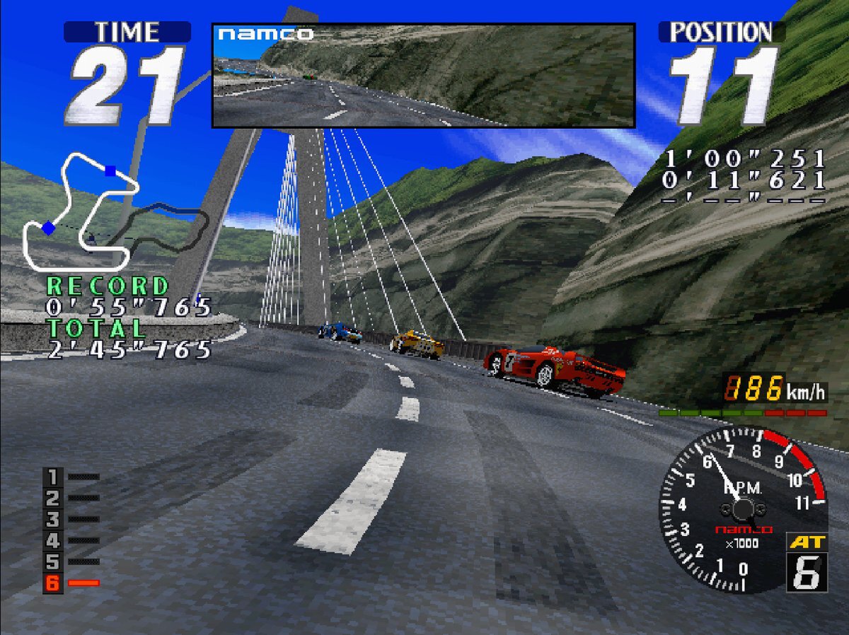 『レイブレーサー』は1995年にナムコ(現:バンダイナムコエンターテインメント)から発売されたレースゲーム。よりダイナミックになった演出、より爽快なドリフト制御など、さまざまな進化を遂げた本作は、リッジレーサーシリーズの第3弾という高い期待を見事に飛び越えるほどの人気作となった。