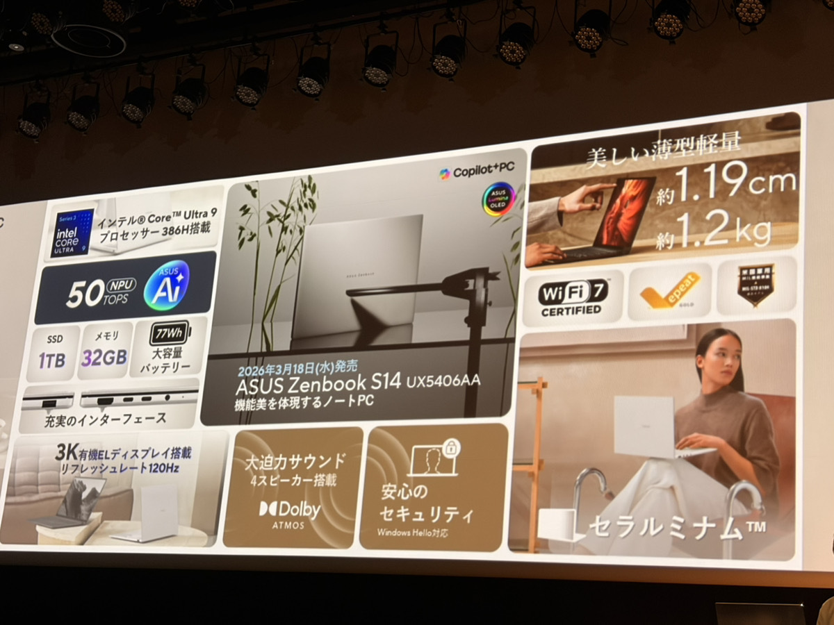 ASUS JAPANは2月25日、インテルの最新プロセッサーCore Ultra (シリーズ3)などを搭載した最新の新型ノートPCシリーズを発表した。
