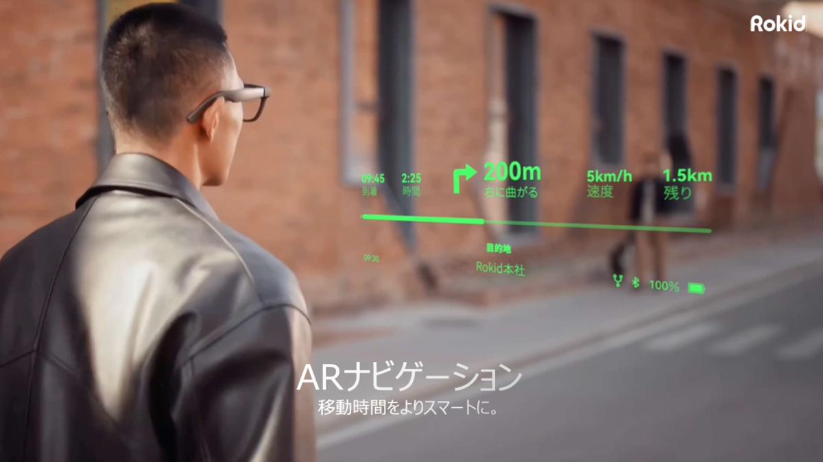 Rokid スマート AI グラスでは、Googleマップと連動したハンズフリーナビゲーション機能も搭載している。スマートフォンを手に持つことなく前方を見たまま移動できるので、安全かつスムーズなナビゲーション体験を実現するとしている。
