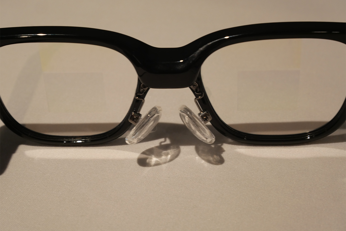 本体のデザインは、スマートグラスとしてはかなりスマートなつくりで、アルミニウム・マグネシウム合金フレームを採用するほか、レンズは厚さ1.7mmの超薄型高強度レンズとなっている。さらに、長時間かけていても鼻が痛くならないというエアノーズパットを採用。そのほか、ヒンジはチタン合金で、テンプルはTR90素材を使用している。