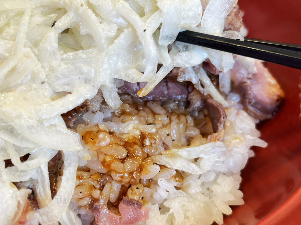 粉チーズもかかっているようで、どこか「シーザーサラダ牛丼」を思わせる味でした! サラダ感覚で食べられて、なおかつ、ローストビーフとも相性がよくてしっかりご飯が進む絶妙なバランス。