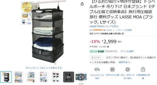 LASSE MOAの吊り下げトラベルポーチがAmazonで割引対象。参考価格3,680円のところ、19%オフの2,999円で販売中。