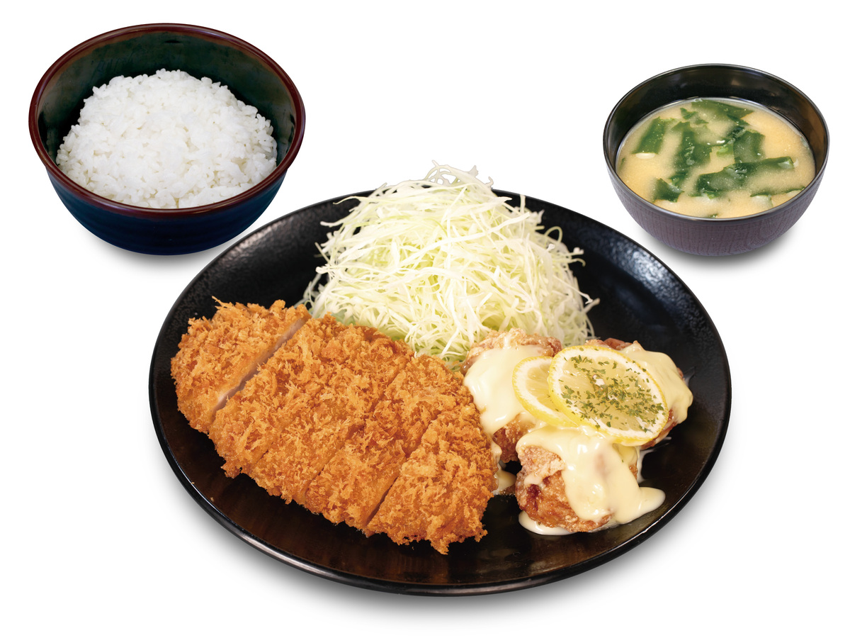 ▲「ロースかつ&ハニーレモン唐揚げ定食」1130円