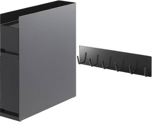 セットの「マグネット キッチンツールフック」は、マグネットが付くスチール壁面に取り付けるタイプ。耐荷重は約1.5kg(フック1つあたり約250g)。鍋つかみや計量スプーンなどを掛けておける。ボトルをラックに収めながら、ツールは壁面に掛けておける組み合わせだ。