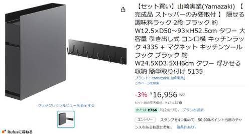 山崎実業の「隠せる 調味料ラック 2段」と「マグネット キッチンツールフック」のセットがAmazonで割引対象。セット参考価格17,435円のところ、3%オフの16,956円で販売中。