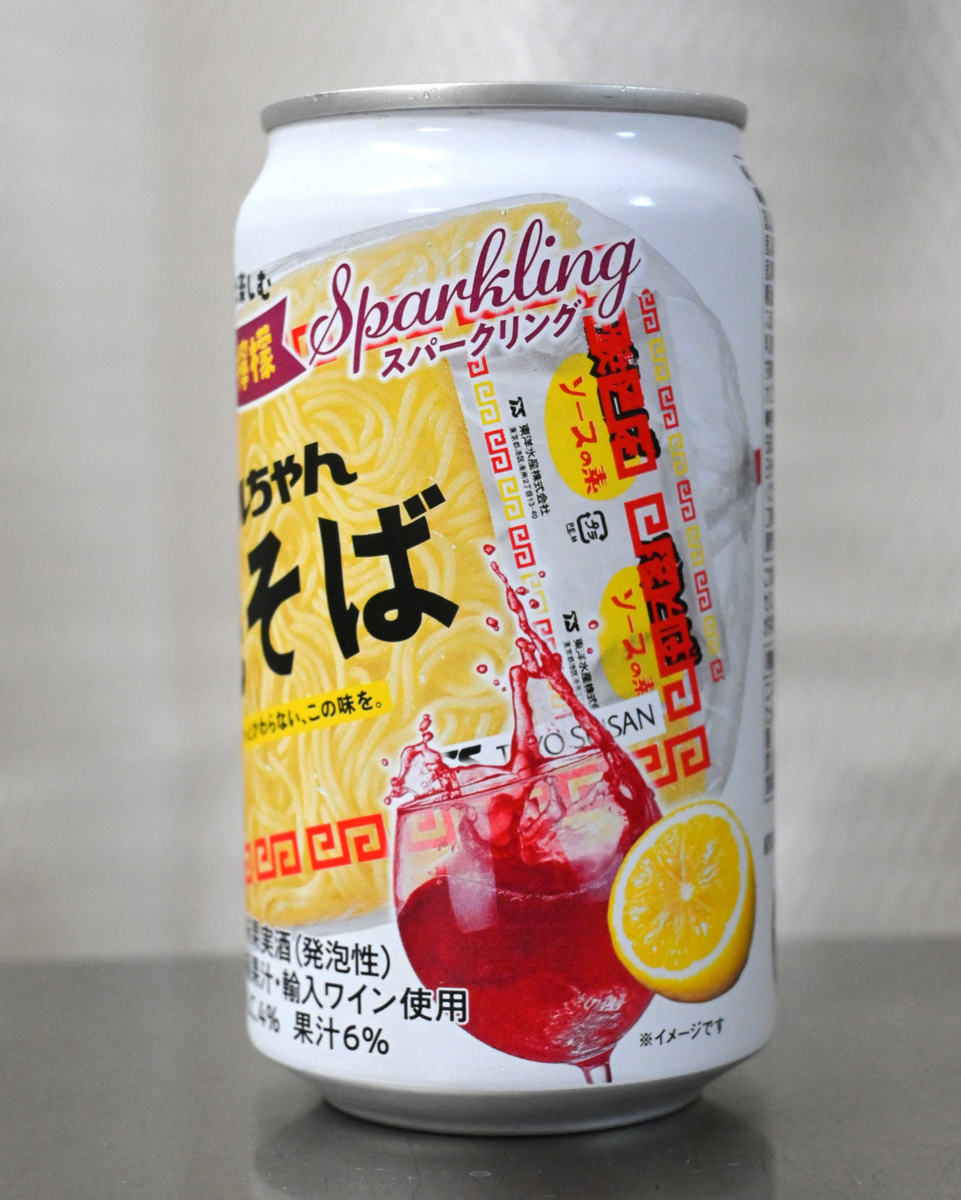 アルコール度数は4%。確かに、レモンの爽やかさで赤ワインテイストであっても飲みやすく、食中にも進みやすそうです。焼そばにも間違いなく合いそう!