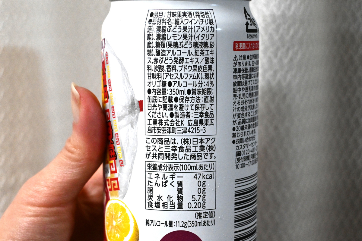 こちら、日本アクセスと東洋水産が共同開発した「マルちゃん焼そばと楽しむ 赤ワイン×檸檬 Sparkling」だそう。「マルちゃん焼そば 3人前」の発売50周年を記念して2月20日から全国のスーパーなどで期間・数量限定で発売されています。製造元は三幸食品工業。