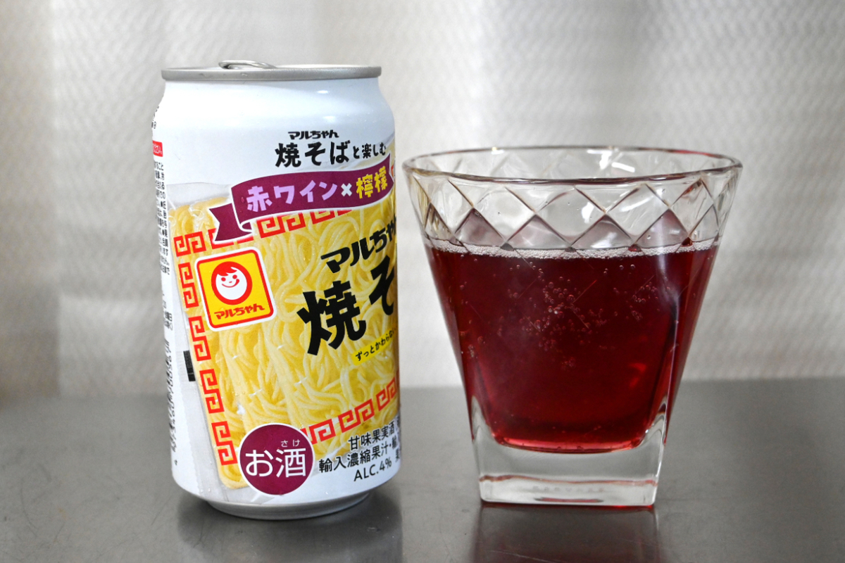 リリースによると「マルちゃん焼そば」の秘伝スパイスソースのスパイシーさに対して、赤ワイン由来の渋みとコク、さらにレモンの風味を加えることで、「マルちゃん焼そば」の味わいを引き立てることを目指したというのです。