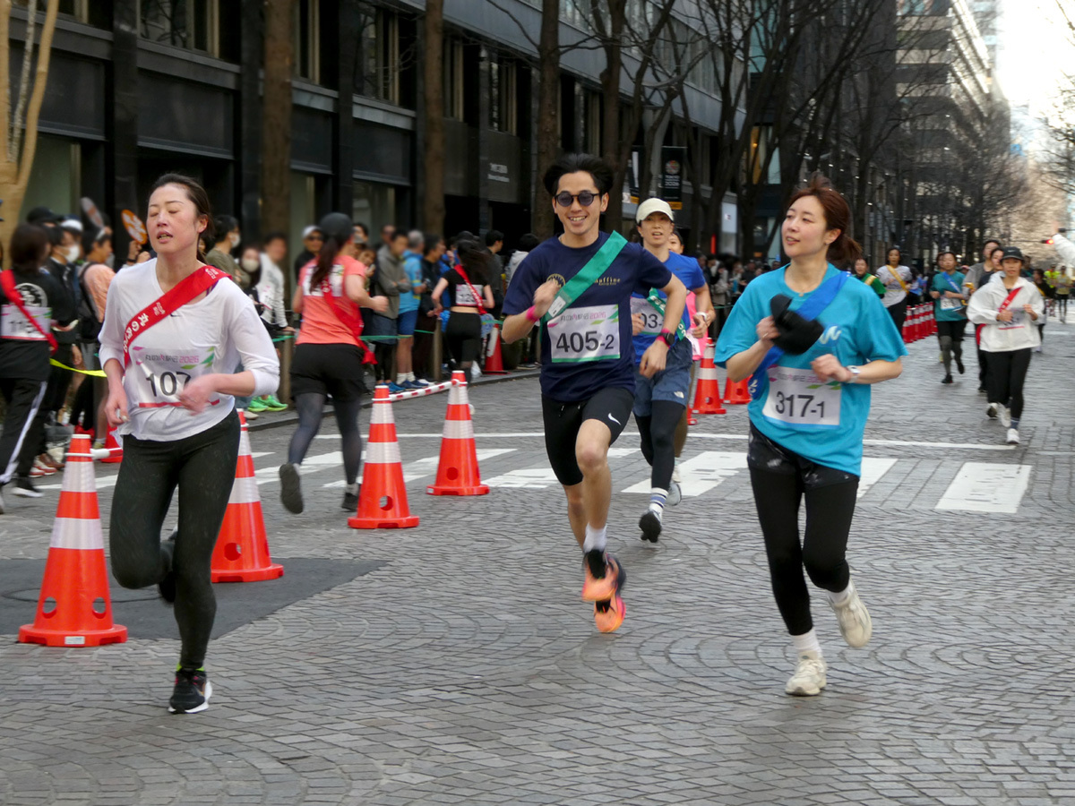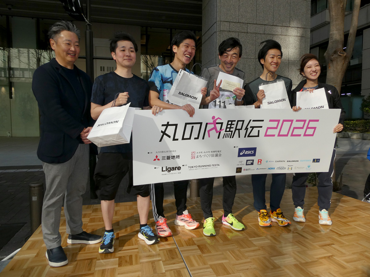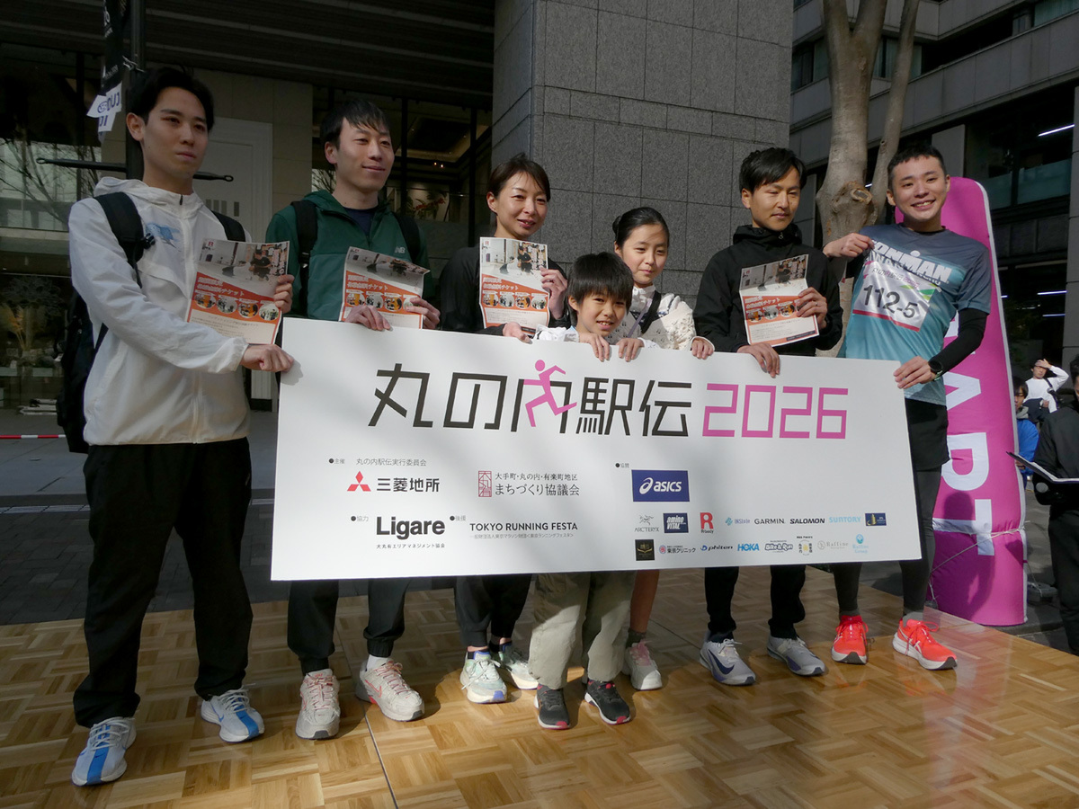 丸の内で働く人たちが5人1チームで襷をつなぎ、「楽しく走る」ことをテーマとする「丸の内駅伝2026」が2月28日、丸の内仲通りで開催された。普段は車が行き交う丸の内仲通りを車両通行止めにした1周約600mのコースを1人2周ずつ走るこのイベントは、同僚らとの絆を深めるだけでなく、同じ丸の内というエリアを拠点に働く人のつながりも生み出す交流の場として、今年は出場チームが交流できるパーティも開催された。