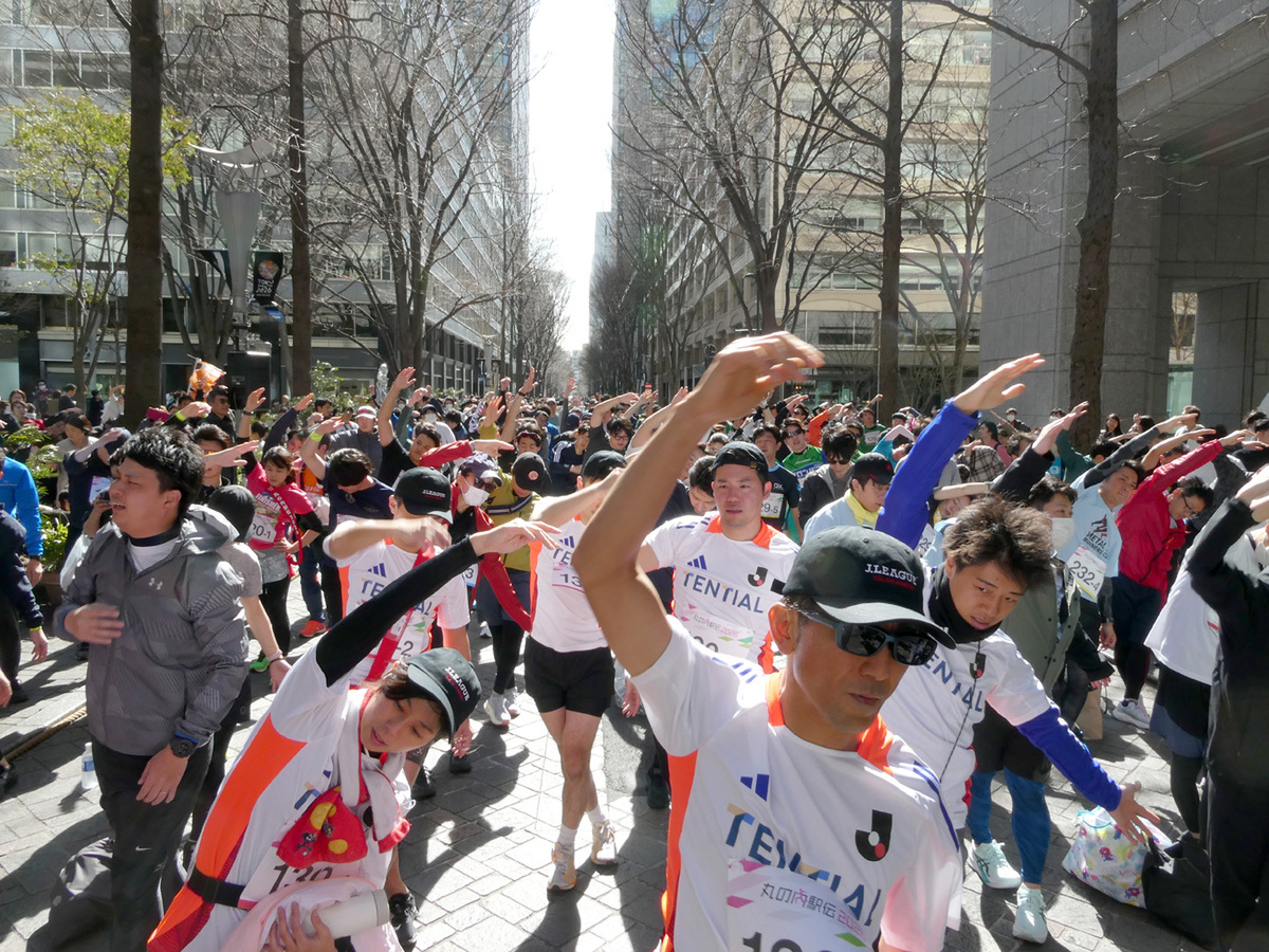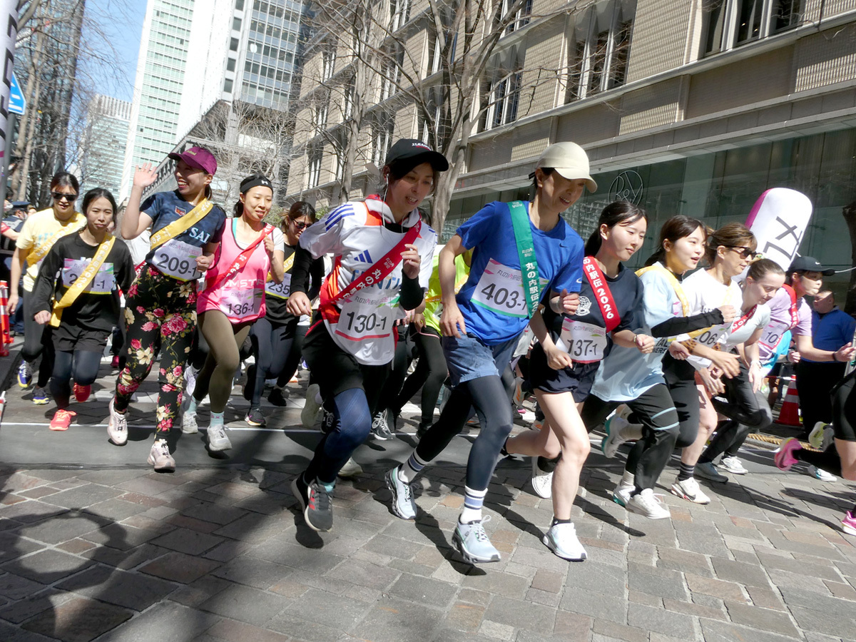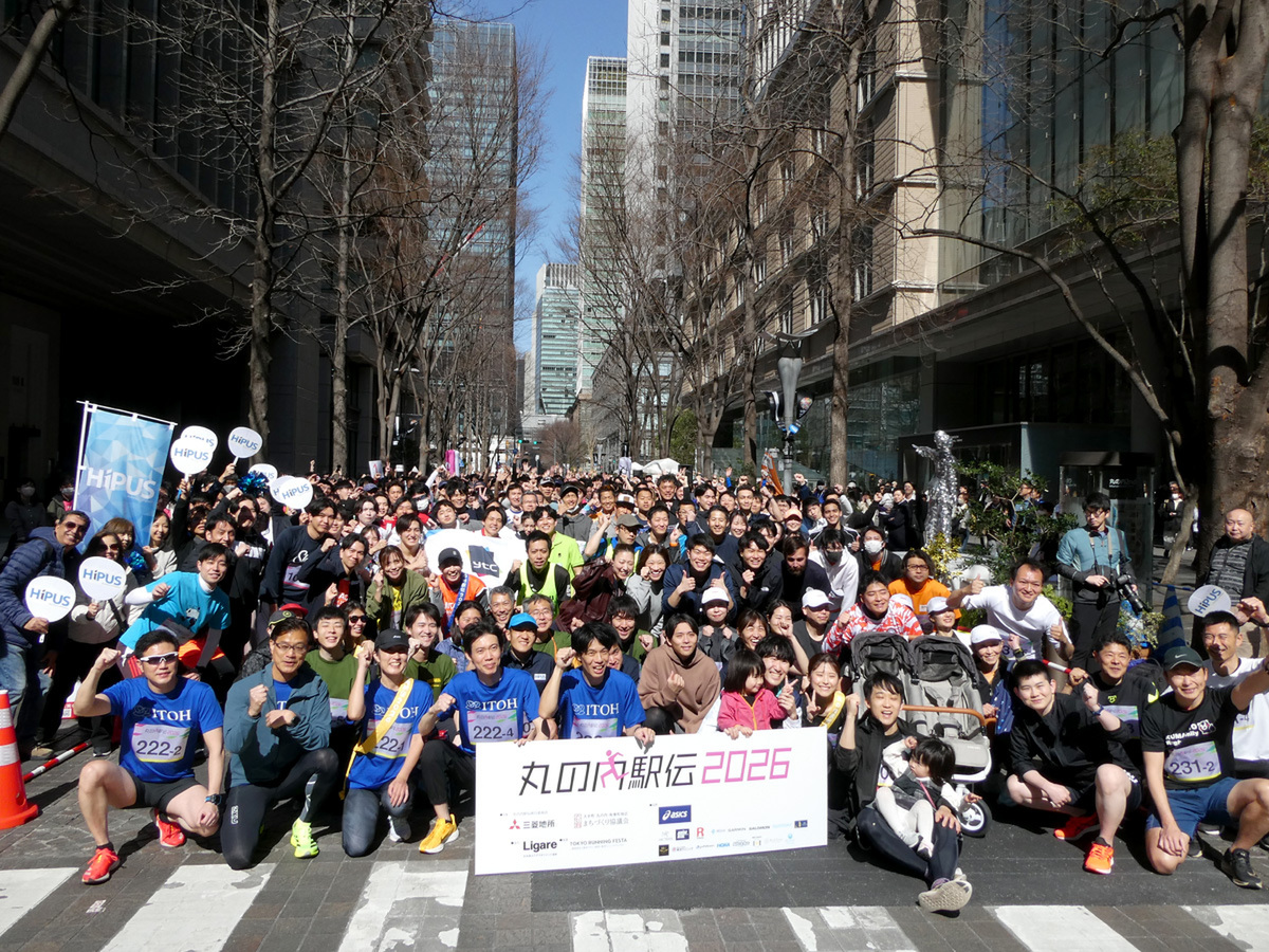 丸の内で働く人たちが5人1チームで襷をつなぎ、「楽しく走る」ことをテーマとする「丸の内駅伝2026」が2月28日、丸の内仲通りで開催された。普段は車が行き交う丸の内仲通りを車両通行止めにした1周約600mのコースを1人2周ずつ走るこのイベントは、同僚らとの絆を深めるだけでなく、同じ丸の内というエリアを拠点に働く人のつながりも生み出す交流の場として、今年は出場チームが交流できるパーティも開催された。