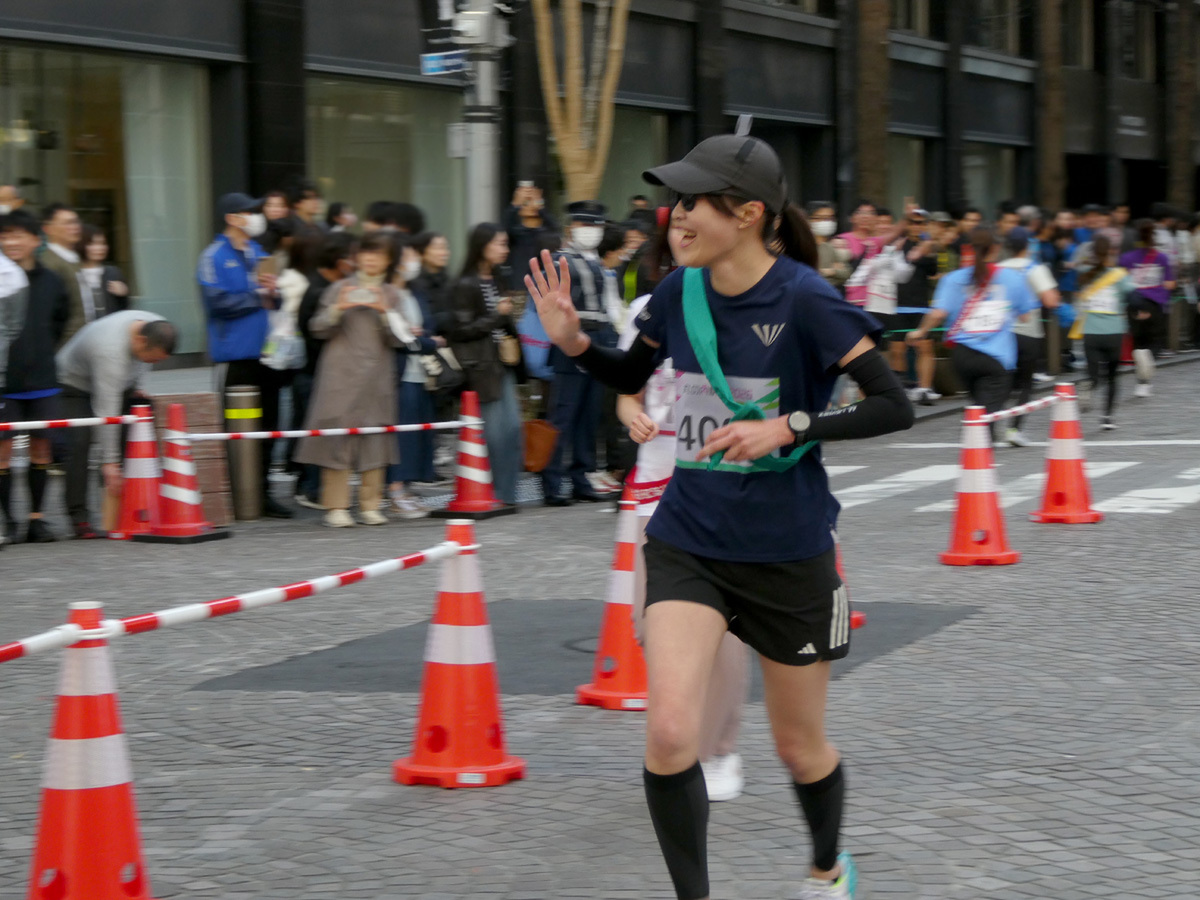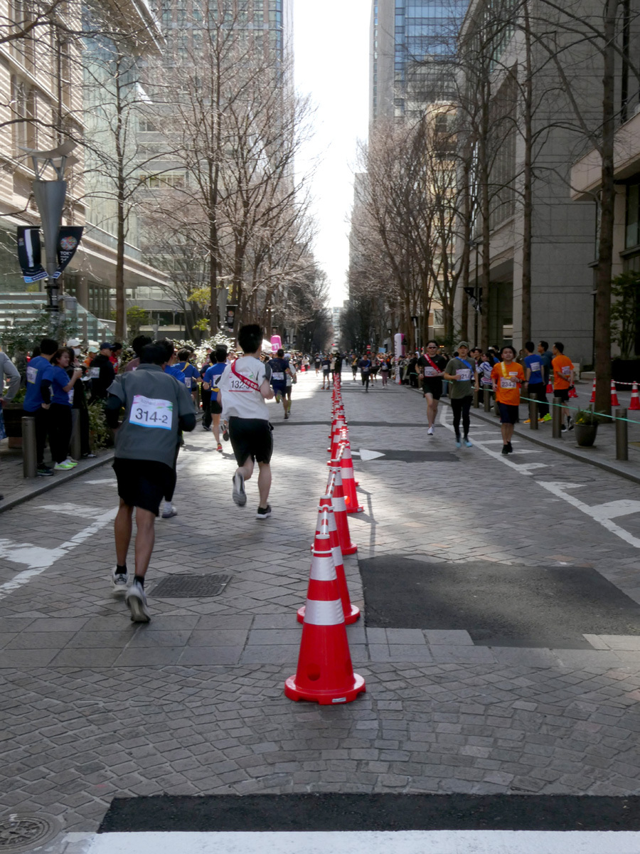 沿道にはチームの応援者を含めてたくさんの観客が集まり、ランナーに声援を送る。快適な気温で走るにはちょうどいい環境と思われたが、行幸通りから日比谷方面に向けて吹く風が思いのほか強かったため、折り返してくるランナーを苦しめていたようだ。