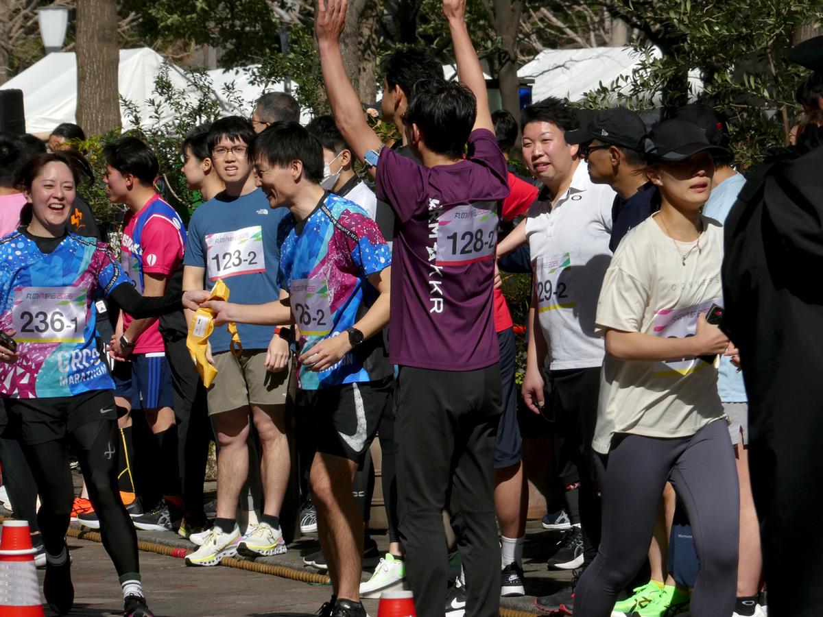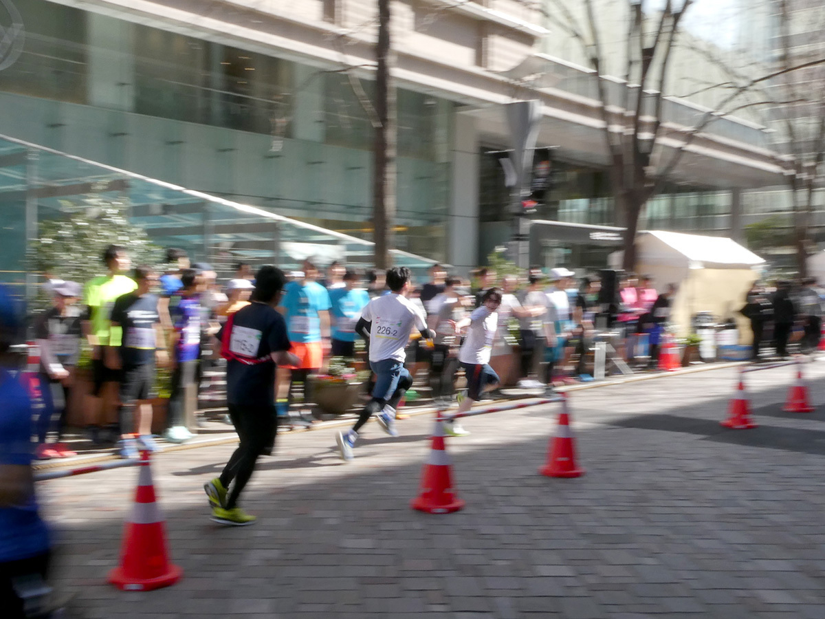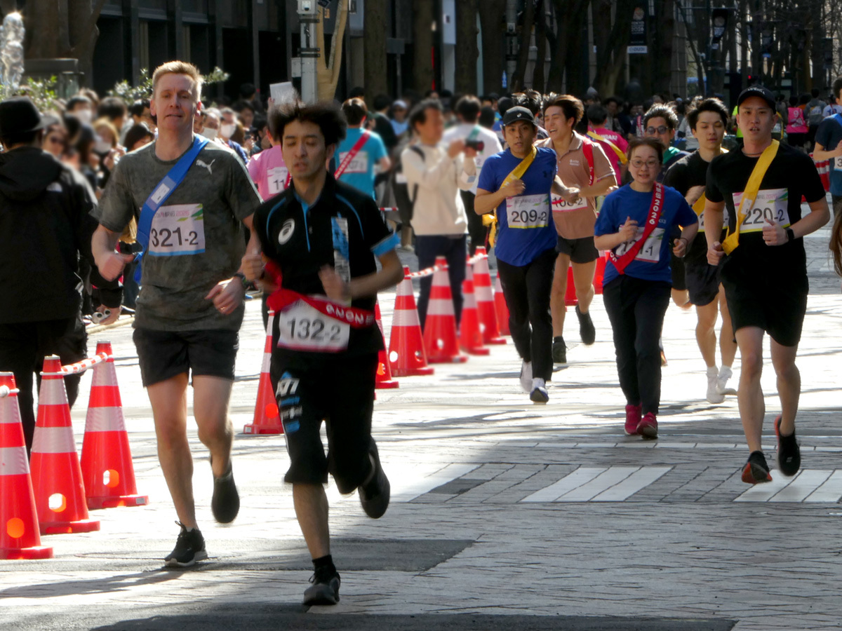 ファンランイベントのため、タイムを競うレースではないが、上位を狙うチーム、普段と違う丸の内仲通りを楽しむチーム、レクリエーションとしてチームメンバーとのつながりを深めるチームと、そのアプローチは様々。当日は春を通り越して初夏を思わせる気温の中、思い思いにイベントを楽しんでいた。