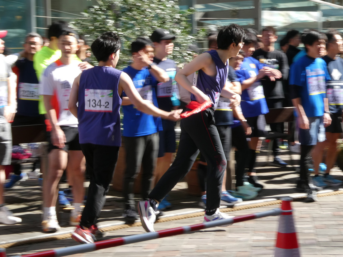 本イベントは駅伝なので、襷をつないでいかなければならない。襷を受け取ってスムーズに走り出す人、受け取った襷を肩にかけるのに手間取る人、中にはリレーゾーンに待っている次の走者に気づかず行き過ぎてしまう人もいて、チームワークが試されていた。