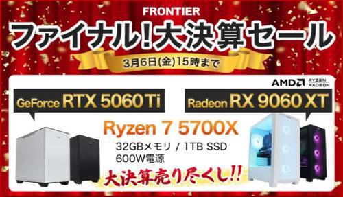 FRONTIER「ファイナル!大決算セール」Ryzen 7 9800X3D×RTX 5070 Ti搭載モデルに注目