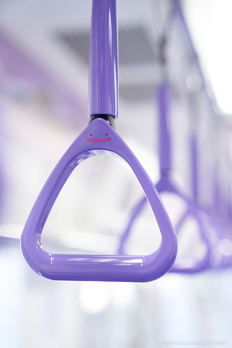 “へんしん”を得意とするメタモンの特性を活かし、駅および電車内全体でメタモンらしさを体感できる空間演出を楽しめる。