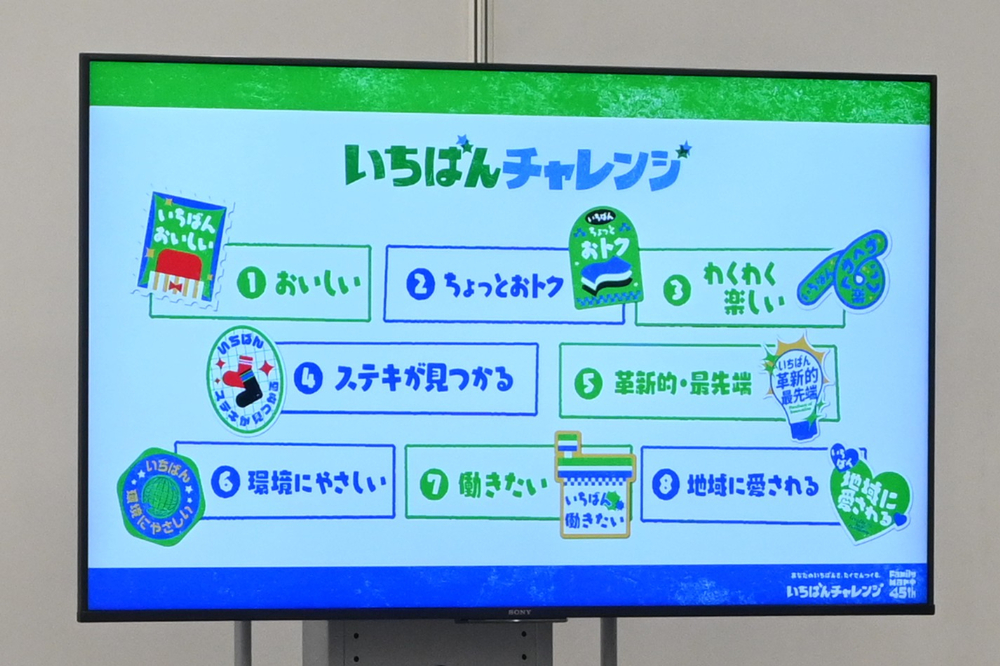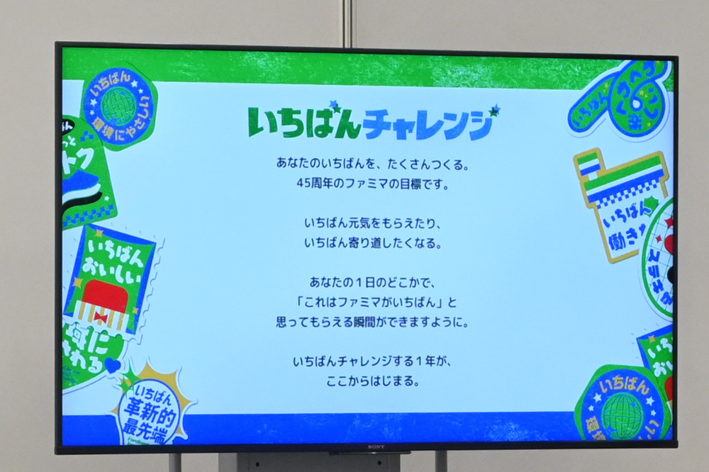 ファミリーマートでは40周年以降、「もっとおいしく」「楽しいおトク」など5つのキーワードを軸に施策を進めてきました。今回の「いちばんチャレンジ」は、それらの流れを引き継いだもので、今後の重点分野を明確にしています。