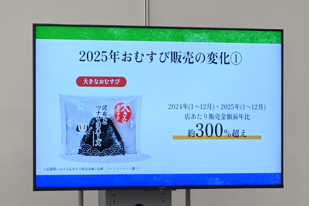 ファミリーマートでは専門店「ぼんご」監修のおむすびなど、昨年打ち出したおむすびの施策が反響が大きかったとのこと。中でも、通常の手巻おむすびの約1.5倍のボリュームの「大きなおむすび」は「1個でしっかり満足したい」というニーズを捉えて好調。
