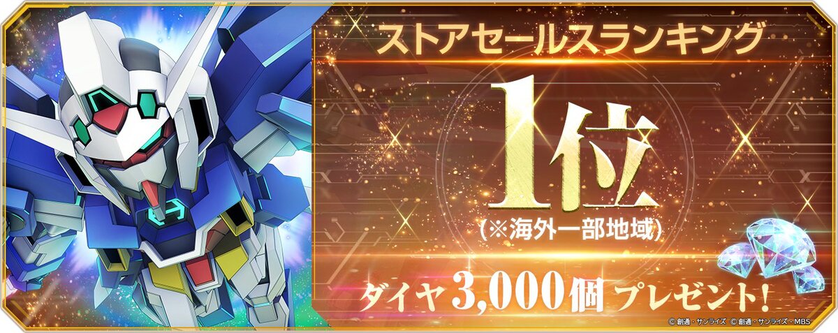 バンダイナムコエンターテインメントは3月1日、iOS/Android/PC向けガンダムシミュレーション「SDガンダム ジージェネレーション エターナル」の海外一部地域でストアセールスランキング1位達成したことを記念し、ダイヤ3000個を全ユーザーへ無料配布した。