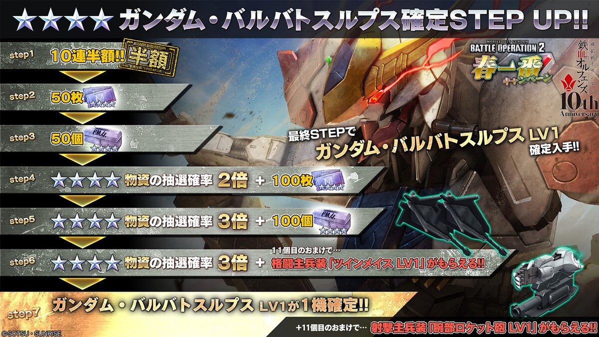 2026年3月5日のアップデート後の「ガンダム・バルバトスルプス」実装にあわせて、「ガンダム・バルバトスルプス確定STEP UP抽選配給」を開催予定。