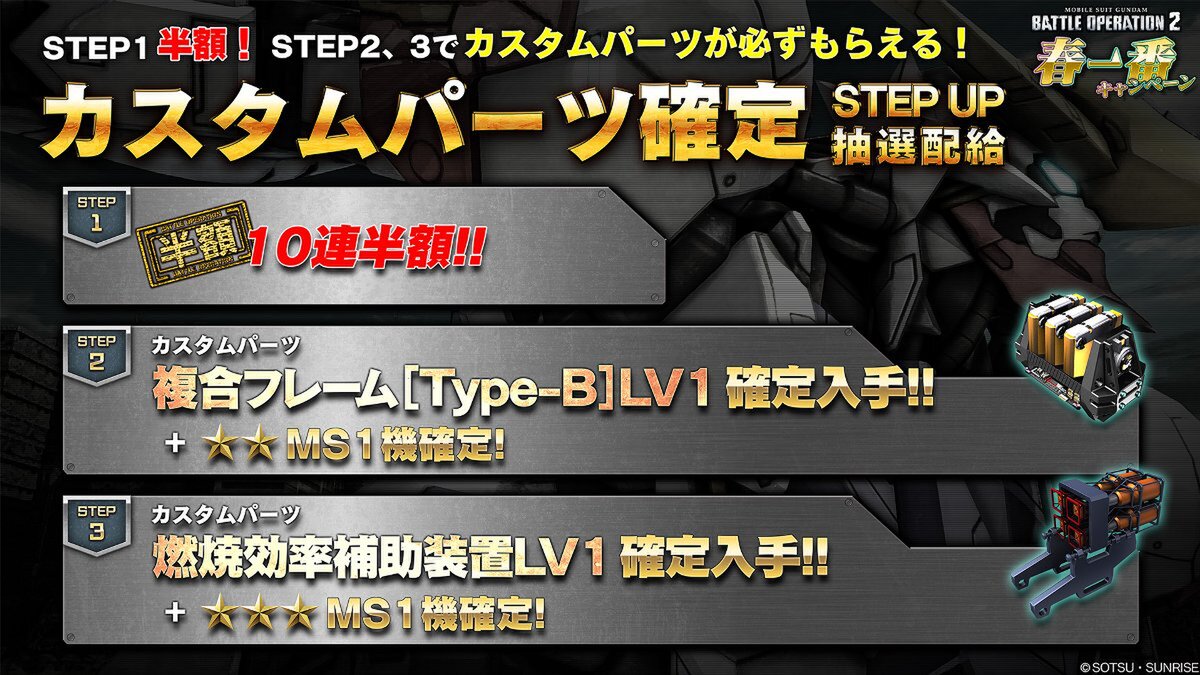「カスタムパーツ確定STEP UP抽選配給」も同時開催!