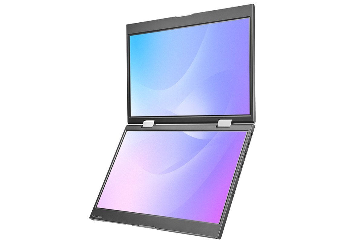 「LCD-YC1412DX」は、フルHD解像度(1920×1080ドット)の14型ディスプレーを上下に2画面搭載したモバイルデュアルディスプレー。ADSパネルを採用し、2画面モデルながら約1.3kgと軽量。無段階で角度調整できるスタンドも搭載する。