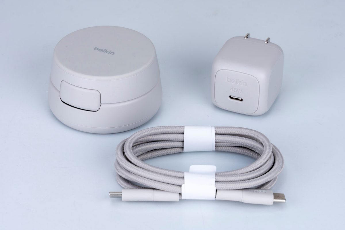 同梱される1.5mのUSB-Cケーブルは、取り回しの良い編み込みタイプが採用されており、断線のリスクを抑えつつ、外出先やベッドサイドなど場所を選ばず設置できる。