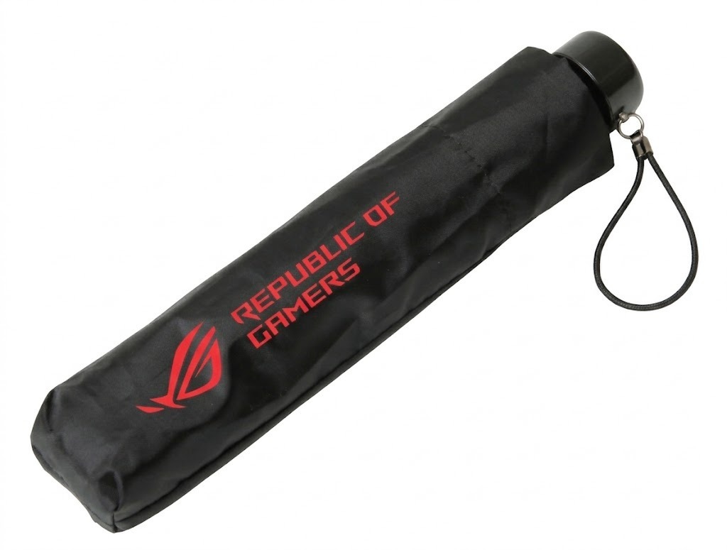 秋葉原のPCショップを散策中に雨に降られたら、購入したPCやPCパーツが濡れて故障する可能性大! そこでお役立ちなのがこのROGロゴ入りオリジナル折り畳み傘。PCゲーマーをアピールしつつ、大事なガジェットを雨から守れます。