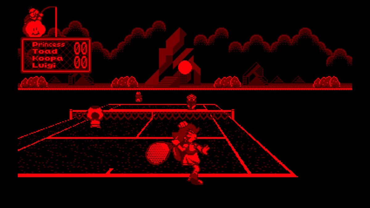 「マリオズテニス」は1995年に発売されたバーチャルボーイ用スポーツゲーム。コートを縦横無尽に走り回るマリオと仲間たち。ボールが頭上を越えたときなど、思わず振り向きたくなる臨場感。まるで本当のテニスをプレイしているかのようなバーチャル感覚を楽しもう。