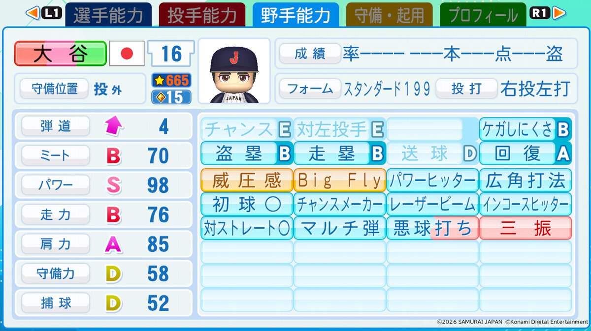 ■今作の大谷選手の能力値はいかに……?