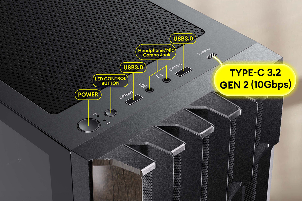 机の上にも十分置ける195(W)×405(D)×449(H)mmというサイズだが、あいにく水冷CPUクーラーのラジエーター搭載には対応していない。それでも、最長345mmまでのビデオカード、全高160mmまでのCPUクーラーに対応している。コストを抑えたゲーミングPC自作には十分なスペックを備えている。