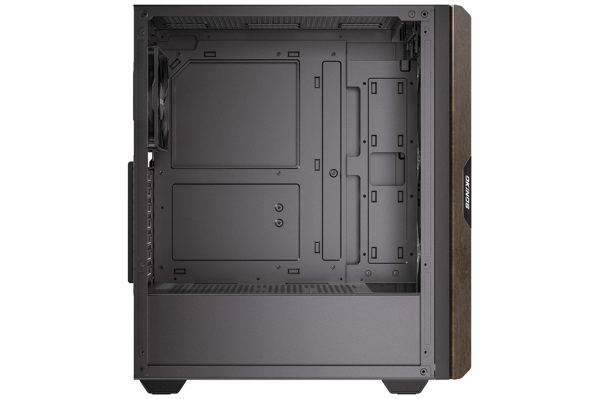 PCケースには、Okinos「Okinos 5 Air」を選んでいる。前面側面に木材を使った旬なデザインで、標準で120mmファンを前面×3、背面×1を搭載し、価格は6000円切りとコスパ抜群となっている。