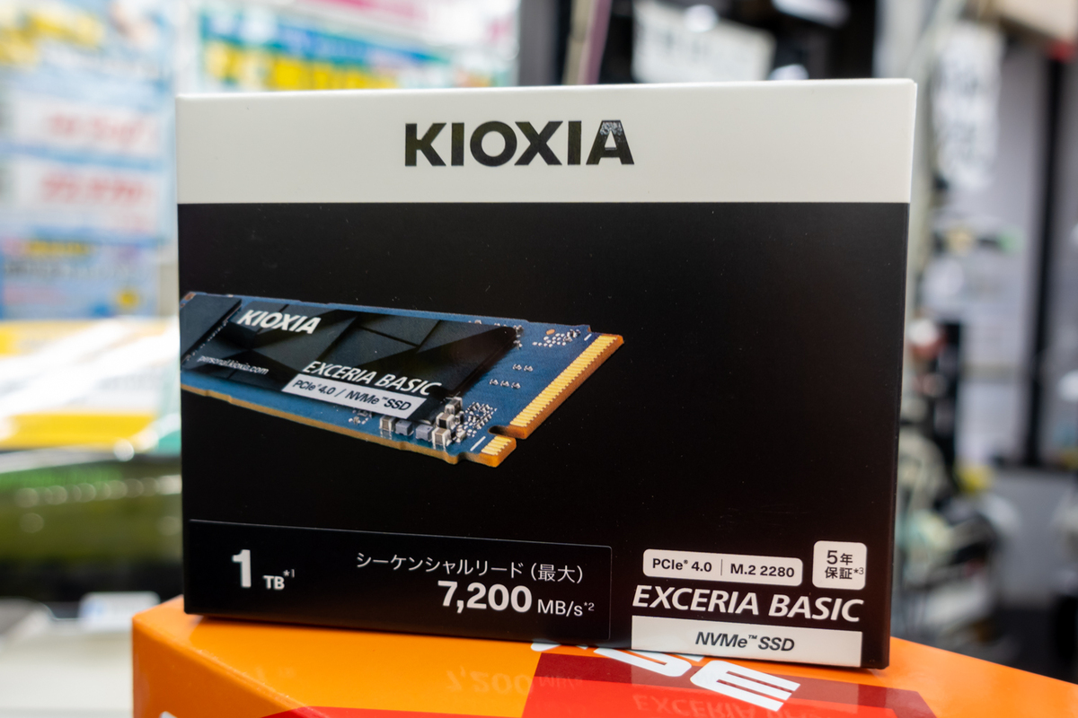 メインストレージのSSDには、最大読み出し速度7200MB/秒、書き込み速度6600MB/秒を発揮するKIOXIA「EXCERIA BASIC NVMe SSD」の容量1TBモデルを選んでいる。