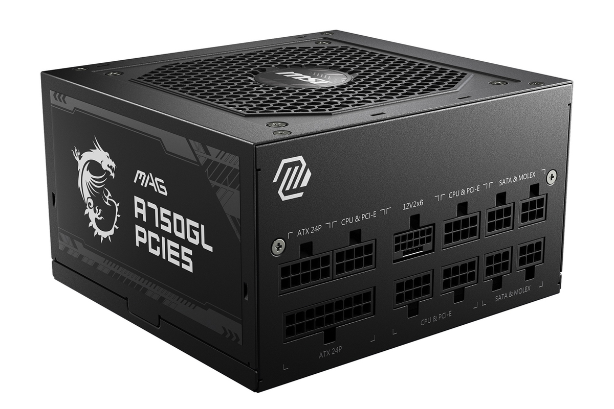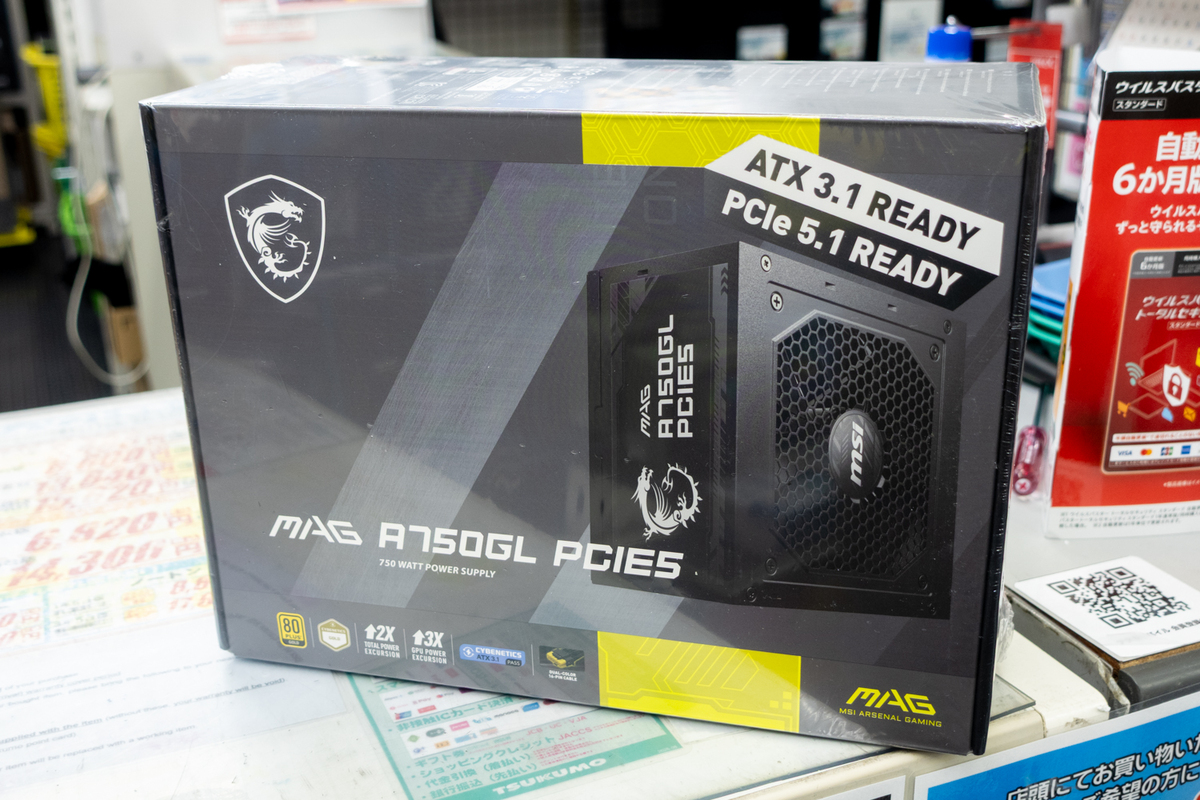 電源ユニットは、定番人気のひとつであるMSI「MAG A750GL PCIE5」を組み合わせている。容量は750Wで、ビデオカードはワンランク上のAMD Radeon RX 9070/Radeon RX 9070 XTや、NVIDIA GeForce RTX 5060 Tiなどにも対応できる。