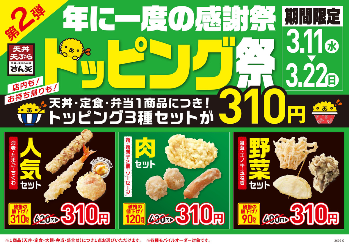 続いて3月11日~22日の期間は、第2弾「トッピング祭」を開催します。