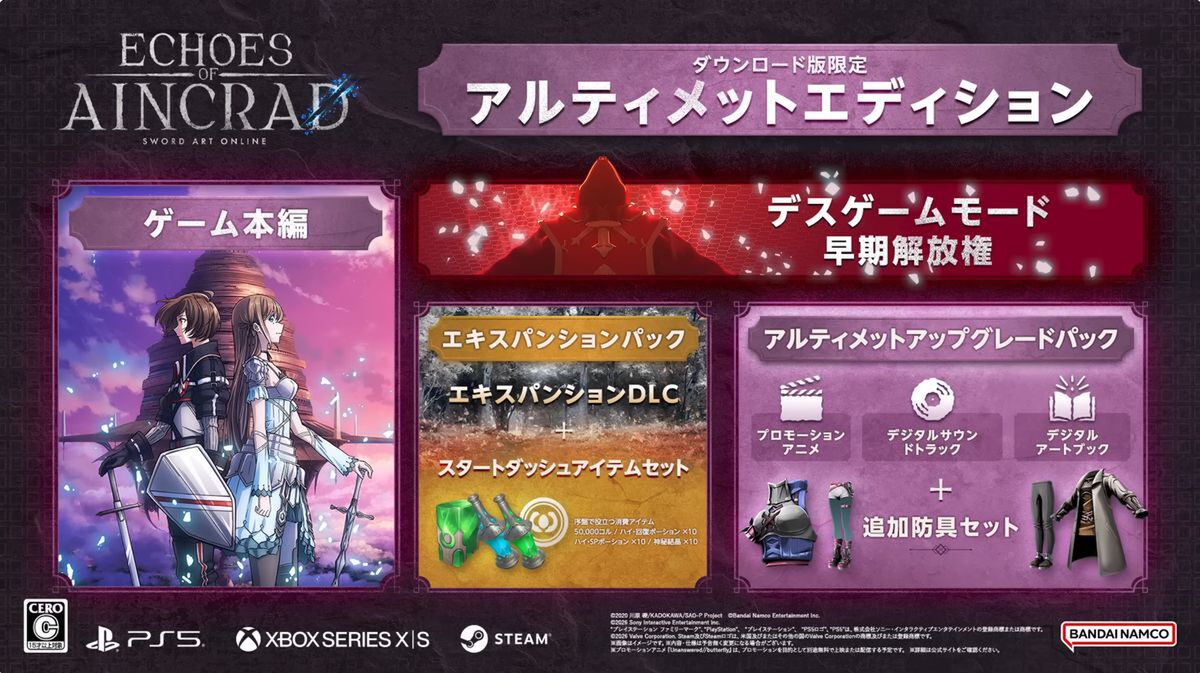 バンダイナムコエンターテインメントは3月6日、「ソードアート・オンライン」の家庭用ゲーム完全新作「Echoes of Aincrad(エコーズ・オブ・アインクラッド)」を発表した。