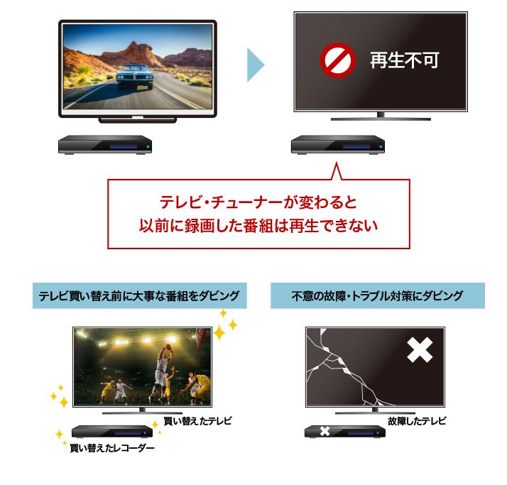 便利なBDレコですが、すべてのテレビの録画データをダビングできるわけではありません。利用するためには、テレビやチューナーがDTCP-IPのアップロードムーブに対応している必要があります。