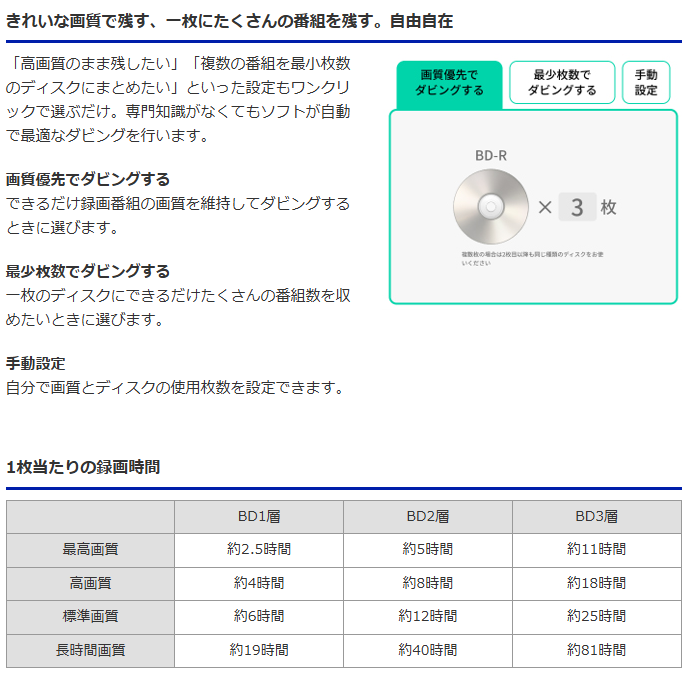 BDレコでは、録画番組のダビング方法も複数用意されています。用途に応じて使い分けられるのがポイントです。
