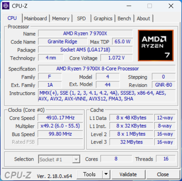 | CPU | AMD「Ryzen 7 9700X」 (8コア/16スレッド、最大5.5GHz、TDP65W) |