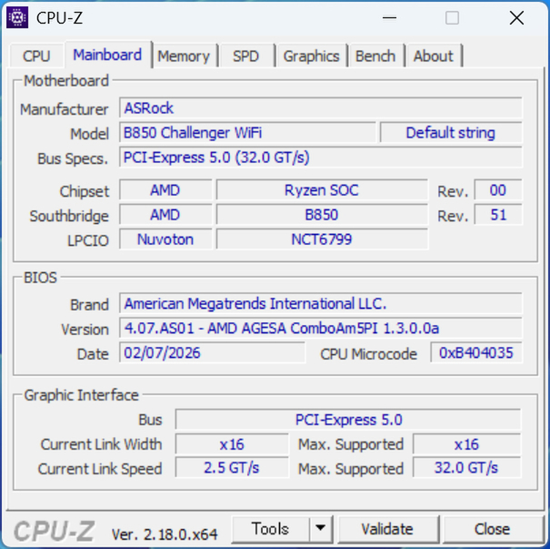 | マザーボード | ASRock「B850 Challenger WiFi」 (AMD B850、ATX) |