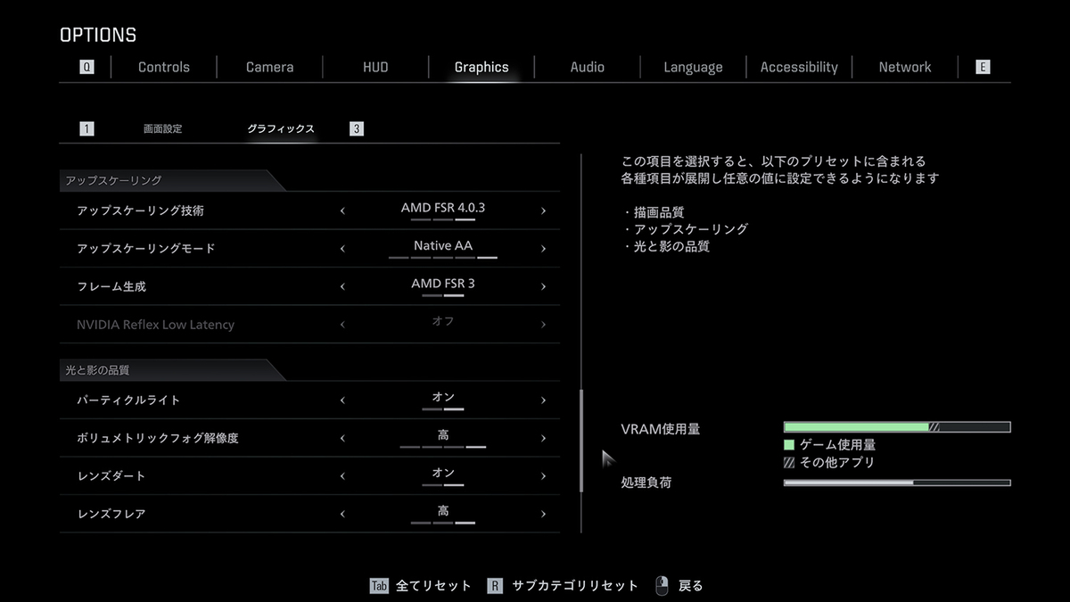 Radeonシリーズは昨年末にアップデートされ、AIによる機械学習に対応したAMD超解像技術「AMD FSR Redstone」(FSR 4)が使えるようになった。「バイオハザード レクイエム」の対応を期待したが、残念ながら機械学習を利用したアップスケーリングとフレーム生成は有効にならなかった。今後のアップデートに期待したい。