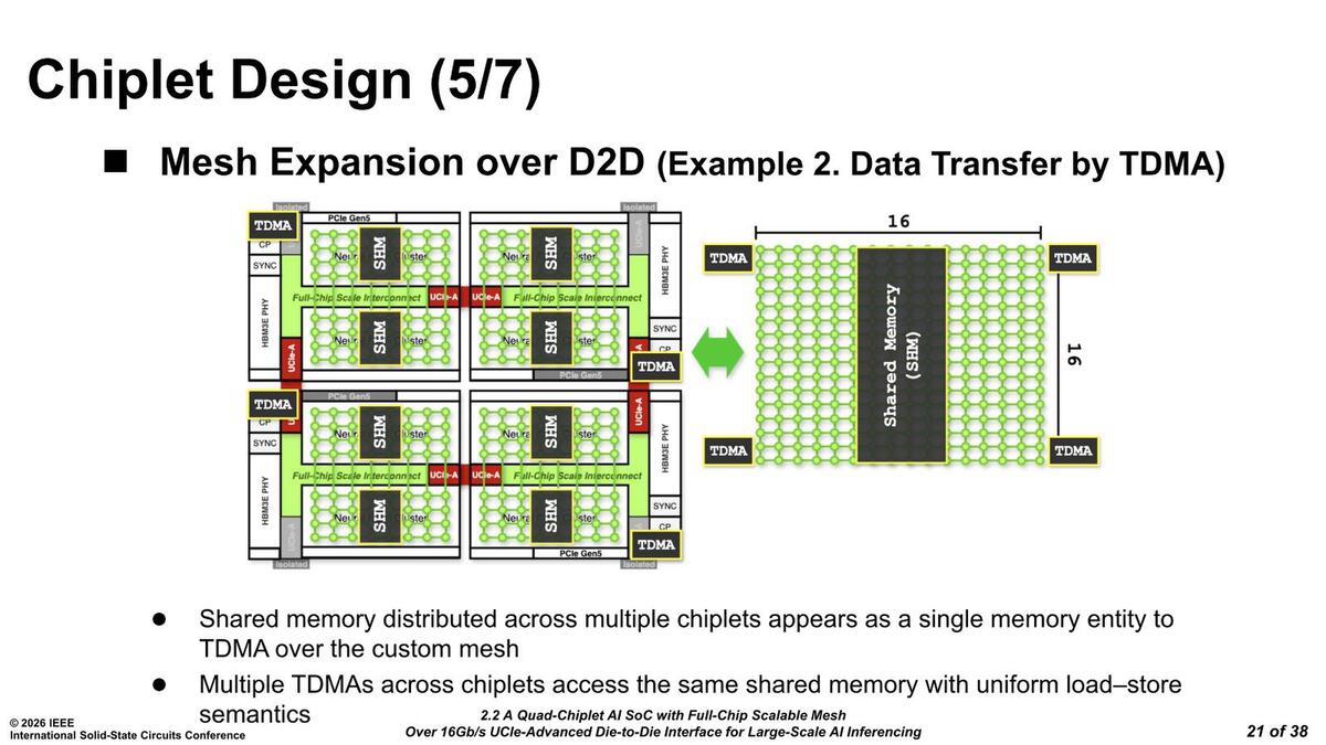 スクラッチパッドのハンドリングは各チップレット上のタスクDMAユニットが行なうとしている。おそらく個々のTDMAは、他のTDMAと相互に通信しながら、自身のチップレット内のスクラッチパッドの制御をしているのだろう