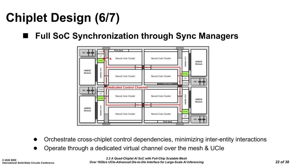 メッシュの制御は、それぞれのチップレット内のSyncマネージャーが相互接続して調整する形になっているという話であった。