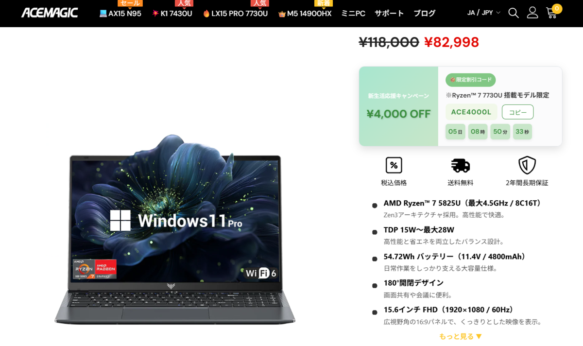 もちろん製品には1年間の保証が付いており、公式サイトでのサポート窓口もありますが、ある程度自分でトラブルを調べられたり、「この安さなら納得の上で使う」という割り切りができる、少しPCに詳しいユーザーや冒険心のあるユーザー向けの1台と言えるかもしれません。