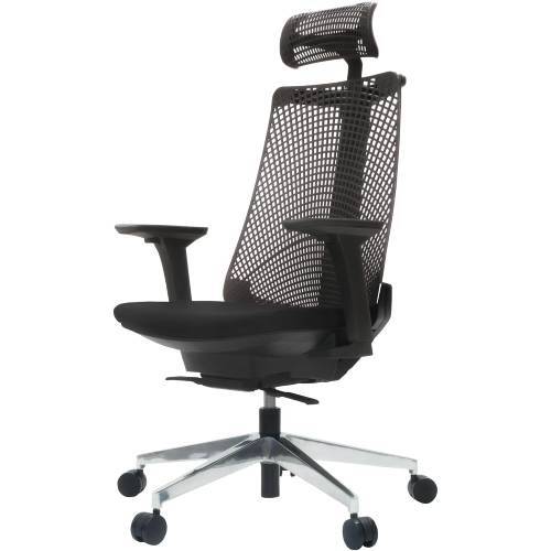 背もたれは肩の上まで届くエクストラハイバック仕様。さらにヘッドレストを備え、背中から頭まで上半身を支える形になっている。背もたれの高さがあり、体を預けて座りやすい。