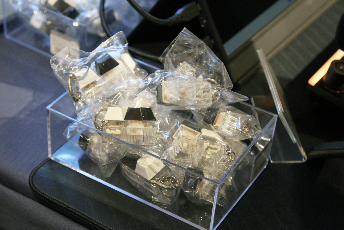 当日用意されるハッシュタグをつけてSNSにブースの様子を投稿することで、静音仕様のキースイッチをストラップ化したものや、ロゴ入り電動ドライバーといったオリジナルのノベルティもゲットできました。